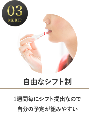 当店では1週間ごとにシフトの提出をお願いしております。無理な出勤強制などは御座いませんのでご自身のご都合に合わせて提出してください。
